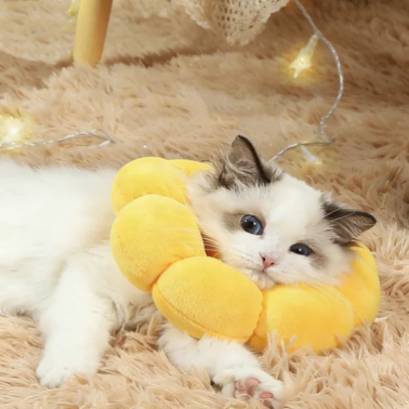 Sunflower Pet Adjustable Elizabethan Collar for Cats Soft Plush Anti-Bite