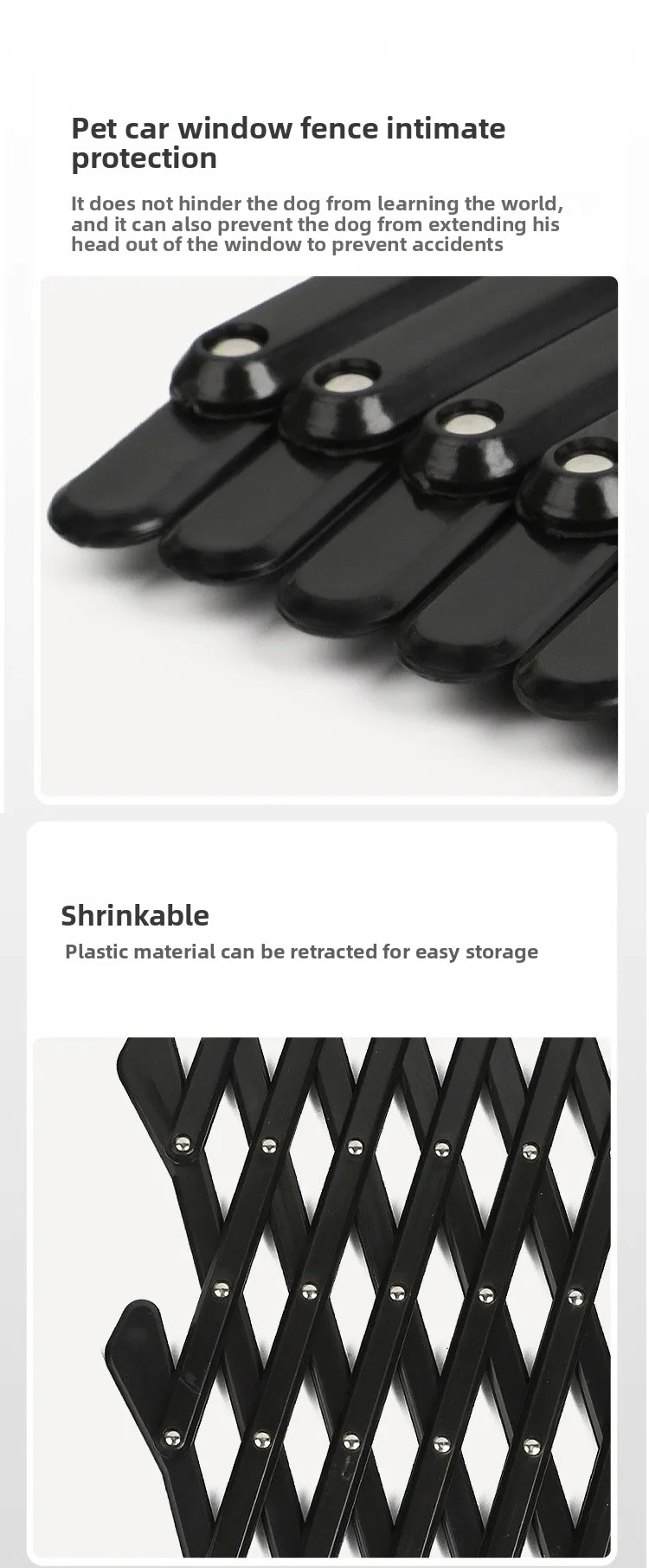 ▪Car protection: Car window/trunk protection to avoid pets jumping out of the window or interfering with driving.