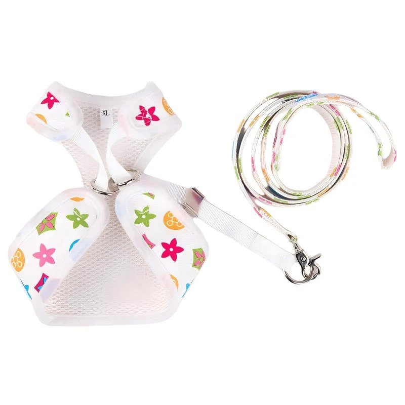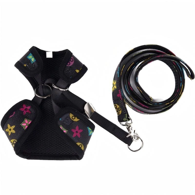 Dog Harness and Leashes Set Classic Pattern Pets Collars Leash Breathable Mesh