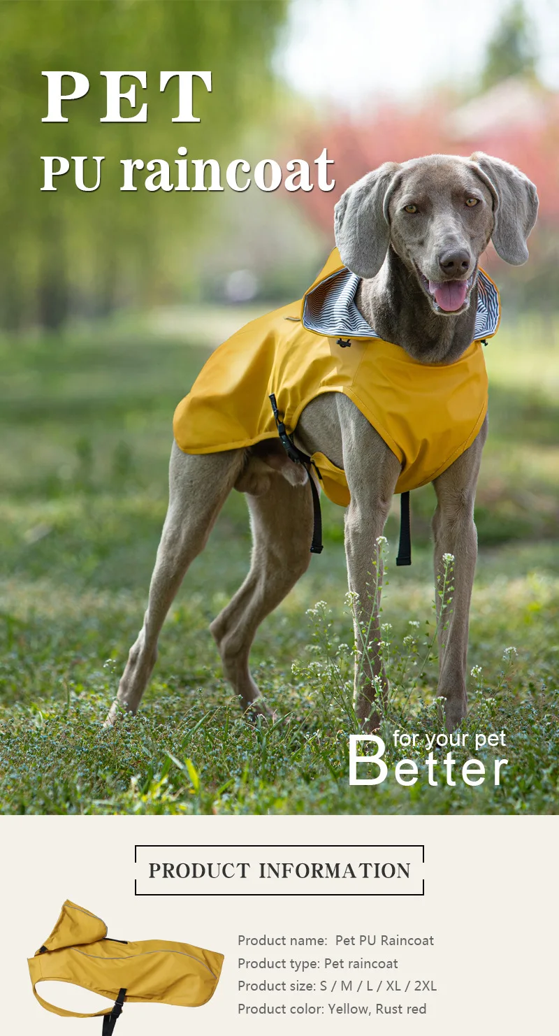 Dog Raincoat for Medium Large Dog Soft PU Dog Rain Jacket Reflective